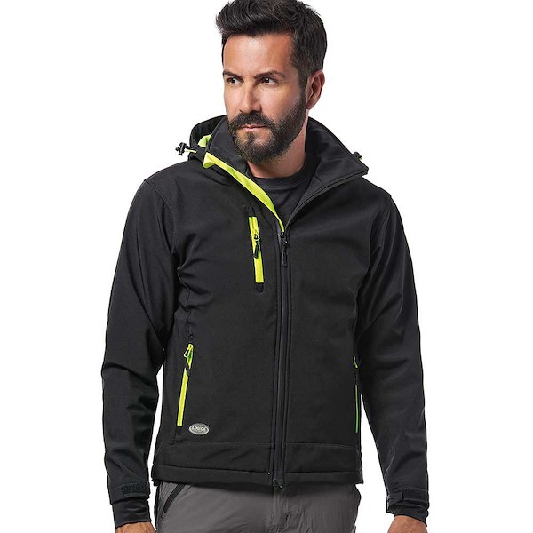 SOFT-SHELL NERO/GIALLO CON CAPPUCCIO STACCABILE